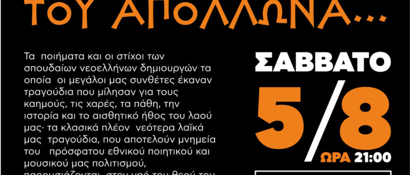 Ο Δήμος Οιχαλίας με σεβασμό προς την ιερότητα του χώρου και την ιστορία του και με σκοπό την ανάδειξη της πολιτιστικής μας κληρονομιάς, διοργανώνει και φέτος μουσική εκδήλωση στο Ναό Επικούριου Απόλλωνος, τo Σάββατο 5 Αυγούστου και ώρα 21:00. Η ορχήστρα δωματίου ‘Μελίγυρις’ θα παρουσιάσει μια συναυλία εμπνευσμένη από ποιήματα και στίχους των σπουδαίων νεοελλήνων […]