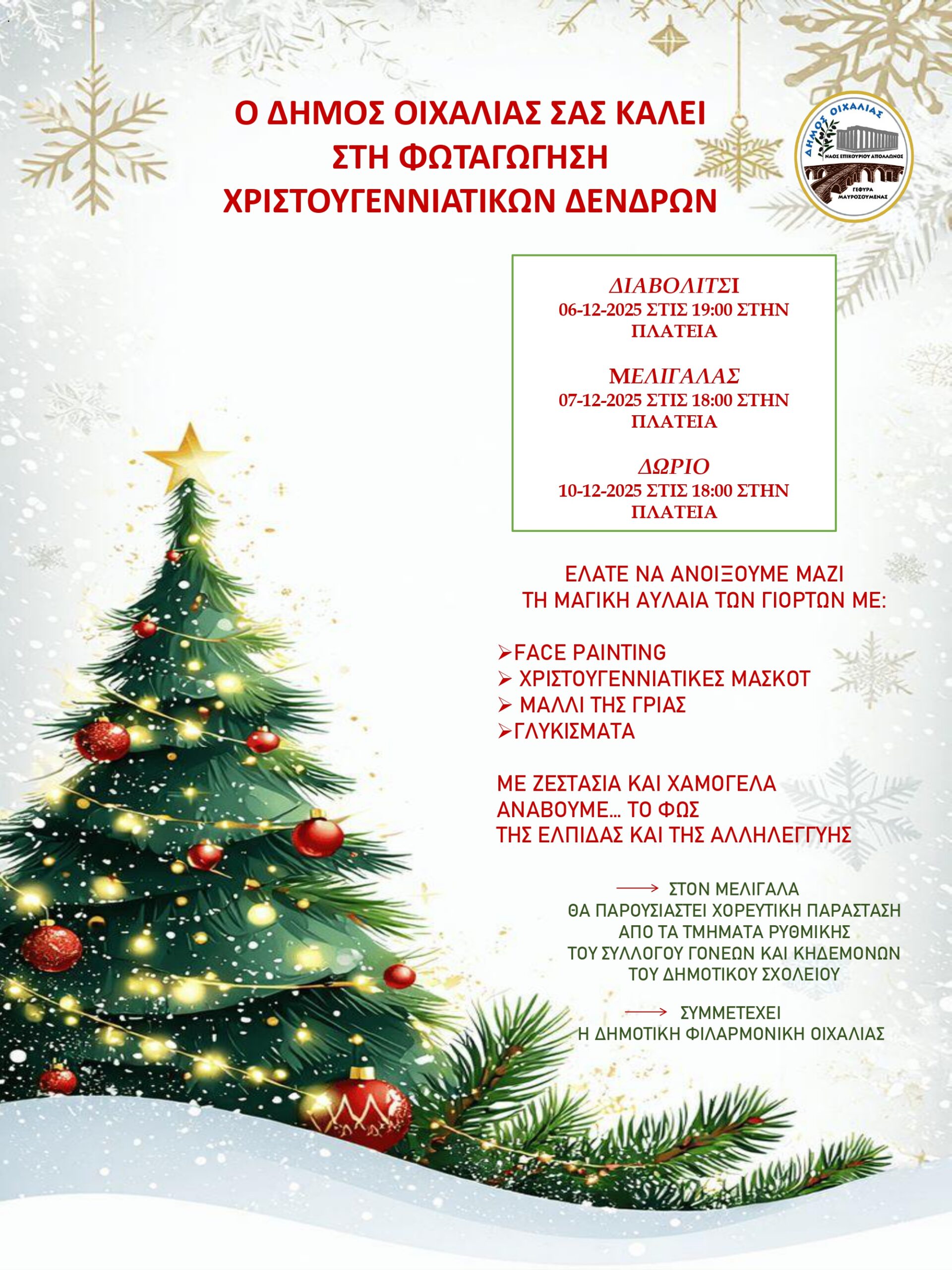 Φωταγώγηση Χριστουγεννιάτικων Δέντρων στον Δήμο Οιχαλίας