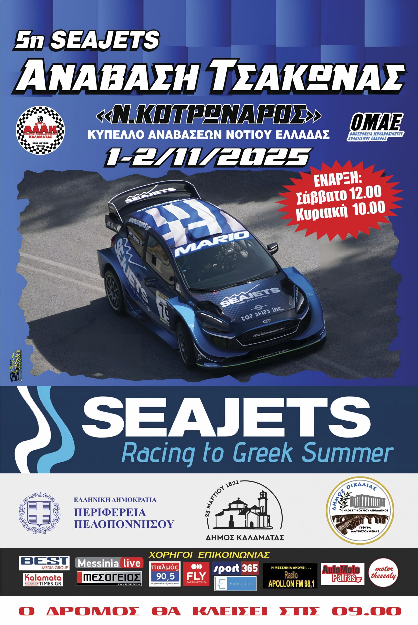 Η καρδιά του μηχανοκίνητου αθλητισμού χτυπά δυνατά αυτό το Σαββατοκύριακο 1 και 2 Νοεμβρίου 2025 στη Μεσσηνία, με την 5η «Ανάβαση Τσάκωνας», που διοργανώνει η Αγωνιστική Λέσχη Αυτοκινήτων Καλαμάτας (ΑΛΑΚ). Η διοργάνωση αποτελεί τον τελευταίο γύρο για το Κύπελλο Νοτίου Ελλάδος και συγκεντρώνει 35 συμμετοχές, με τους συμμετέχοντες να υπόσχονται δυνατές συγκινήσεις και εντυπωσιακές μάχες με το χρονόμετρο.