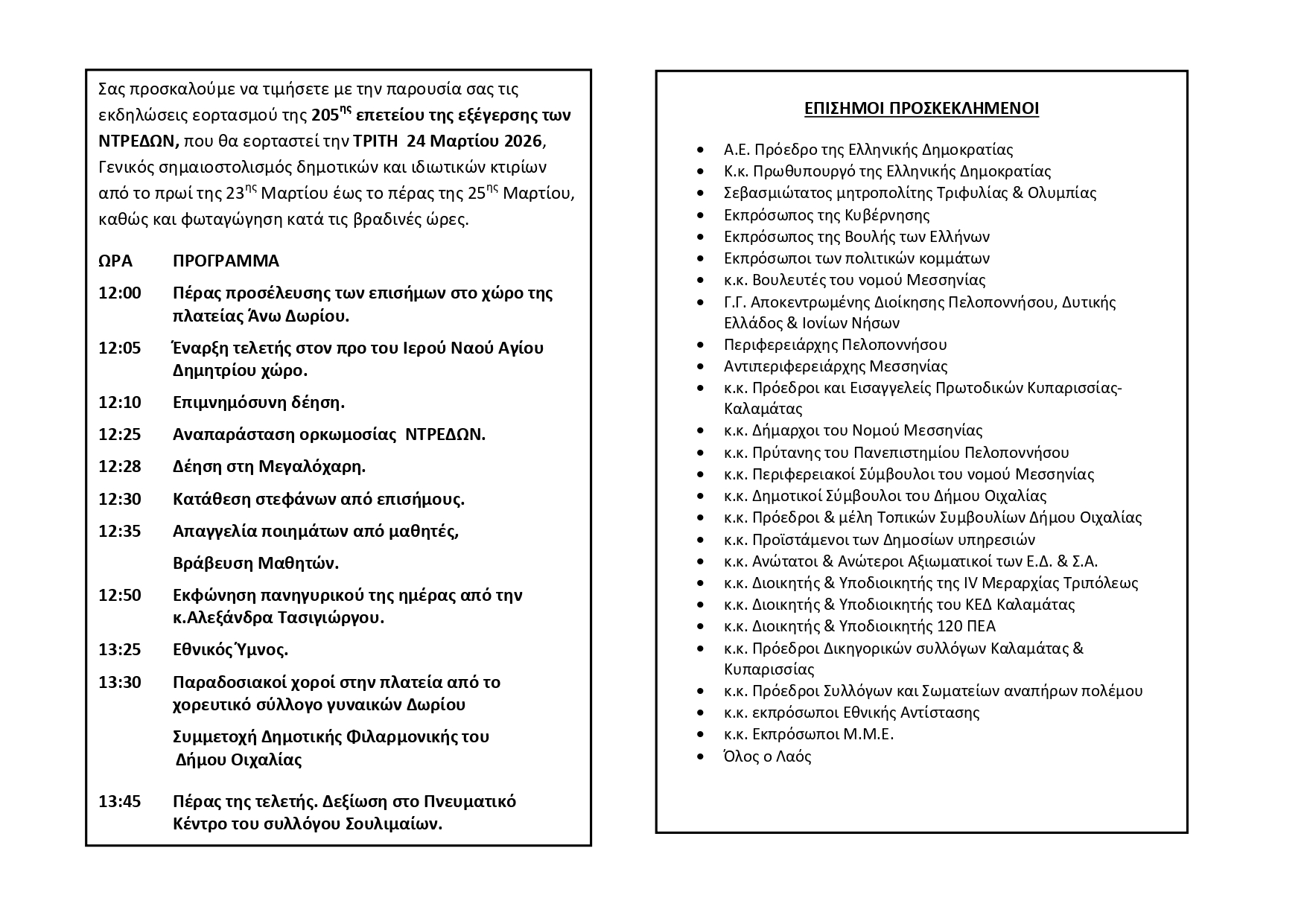 Την Τρίτη 24/3 οι εκδηλώσεις εορτασμού της 205ης επετείου της εξέγερσης και ορκωμοσίας των ΝΤΡΕΔΩΝ στο Άνω Δώριο.