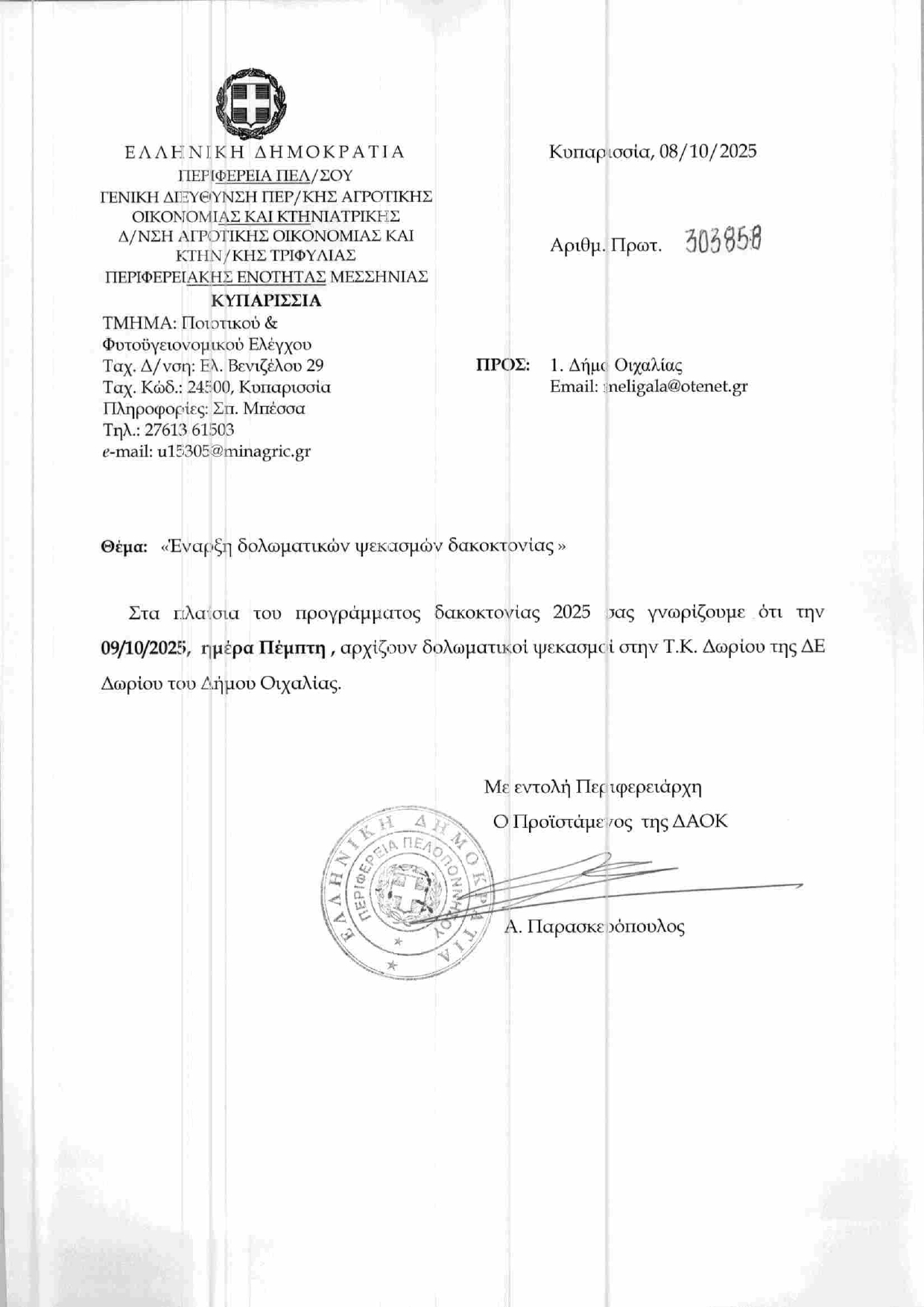 Την Τρίτη, 14-10-2025 η 25η τακτική συνεδρίαση της Δημοτικής Επιτροπής του Δήμου Οιχαλίας.